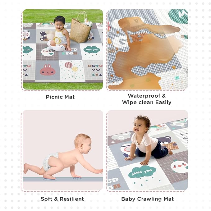 Premium Double Sided Waterproof Play Mat for Babies 0 to 2 Years, Baby Mats for Floor, Newborn Learning Floor Mat, Large & Foldable Crawling Carpet, Educational